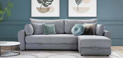 1.319 € Kutna garnitura BOMBAY S, 240x185/235cm, univerzalni kut, ležaj 160x200cm, spremnik, 6x jastuk, cijena vrijedi za tkaninu Port 90/ Dot 90 (siva) ili Port 21/Dot 11 (krem, do isteka zaliha).