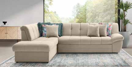 829 € Kutna garnitura RELAX S, 270x200 cm, dostupne razne boje, vrijedi za materijal i boju Cosmic new 103 (bež) i 111 (tamno plava). Mogućnost nadoplate za ležaj 120 €