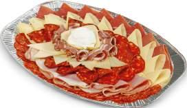 SADRŽI: pršut 140 g, kuhana šunka 290 g, kulenova seka 100 g, salama zimska 100 g, salama panona s paprikom 100 g, sir emmentalar 150 g, sir trapist 170 g, masline crne pečene 70 g
