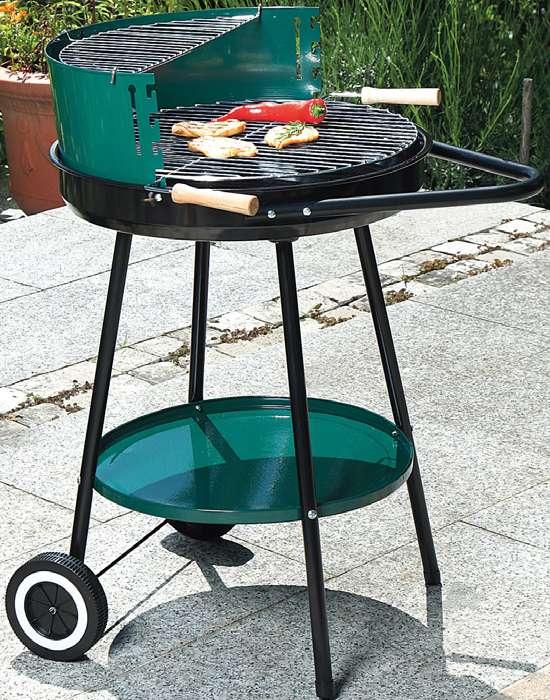 dimenzije: 52 x 84 cm, promjer 52 cm, podna polica za odlaganje, kotači za lakši transport, emajlirana plitica za pripremu vatre, rešetka za grijanje hrane 1 kom