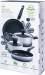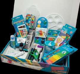 set sadrži: grafitne olovke, drvene boje, flomastere, voštane boje, vodene boje, tempere, paletu, kistove, glinamol, plastelin, ugljen, crni tuš, škarice, ljepila, gumicu, čašicu, foliju za klupu, boju, temperu bijelu 25ml, flomaster školski crni, pregaču za likovni i šiljilo