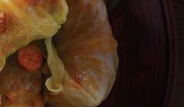 šrepe u kojoj će se kuvati sarme, obložiti lišćem kupusa. Složiti savijene sarme, a između složiti suvo meso (slaninicu).