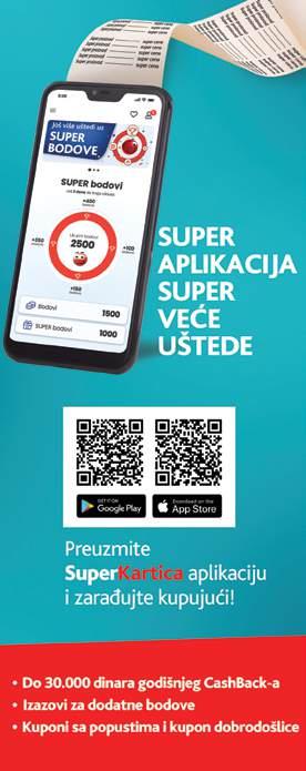 Popust se ne sabira sa drugim popustima i ne važi za akcijske, rinfuzne, akcizne proizvode, kao i na proizvode sa konačnom cenom i proizvode snižene uz Super Karticu za korisnike Super kartice, sveže meso, duvanske proizvode, dnevne novine i časopise, tehniku i male kućne aparate.
