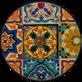 Od željeza, s mozaičnim bazama, kapacitet max. 10kg po polici, mjere: Ø22 x 58h cm.