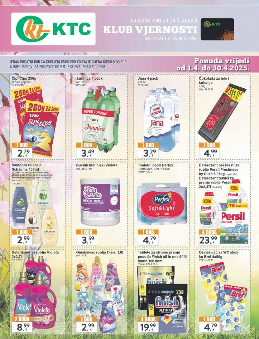 Nakladnik: KTC d.d., N, Tesle 18, 48260 Križevci, Tel: 048/628-554 U nekim prodajnim prostorima, zbog ograničenog prostora, nisu dostupni svi proizvodi iz letka . KTC d.d. zadržava pravo promjene cijena uslijed promjena cijena na tržištu Sve fotografije proizvoda su simbolične, te ne moraju odgovarati stvarnom proizvodu | KTC d.d. zadržava pravo tiskarske pogreške ROBNI CENTRI: BJELOVAR-50, Pakračka ulica 1, 043/638-871, ČAKOVEC-64, Športska 4, 040/638-271, DARUVAR-78, Krste Frankopana 35, 043/638-380, ĐURĐEVAC-59, Đure Basaričeka 16, 048/628-080 GRUBIŠNO POLJE-76, Ulica N. Š. Zrinskog BB, 043/639-170, IVANEC-58, Ivanečko naselje 1c, 042/771-870, KARLOVAC-8A, Senjska 118, 047/658-100, KOPRIVNICA-40, I. Česmičkog 15, 048/628-330, KOPRIVNICA-88, Trg Eugena Kumičića 1, 048/617-640, KRAPINA-77, Bobovje 52/c, 049/658-100, KRIŽEVCI-95, N. Tesle 18–048/628-595, TC KRIŽEVCI-07, Samoposluga–Trg Sv. Florijana 1, 048/628-145, KUTINA-54, Sisačka ulica 14, 044/660-871, MURSKO SREDIŠĆE-86, Tekstilna ulica 1, 040/644-230, PAKRAC-69, I. Gundulića 1b, 034/638-970, PETRINJA-79, Ul. Ivana Gundulića 14, 044/500-551, PITOMAČA-42, P. Preradovića 2, 033/638-902, POŽEGA-44, P. Radića 46A, 034/638-152,PRELOG-62, Zrinskih bb, 040/638-160, SISAK-41, N. Tesle 12/b, 044/660-926, SLATINA-43, Industrijska bb, 033/638-021, VARAŽDIN-87, Gospodarska 3, 042/658-850, VIROVITICA-46, Vukovarska 3a, 033/638-970, VRBOVEC-48, Zagrebačka 48, 01/2793-242, ZABOK-60, Prilaz Janka Tomića 1, 049/658-966, DUGO SELO-90, II Savski odvojak 12,01/688-6230