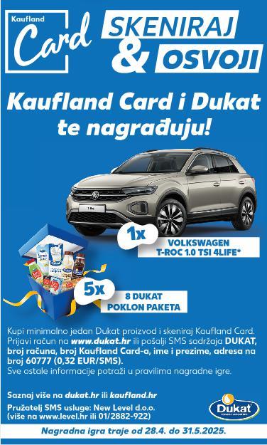 Saznaj više na dukat.hr ili kaufland.hr Pružatelj SMS usluge: New Level d.o.o. (više na www.level.hr ili 01/2882-922)