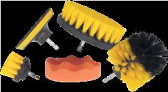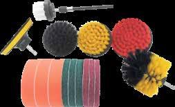 Set uključuje: mekane, srednje tvrde i tvrde četke za čišćenje, jastučiće za ribanje, disk za poliranje, spužvu za poliranje, nastavak za produljenje dosega