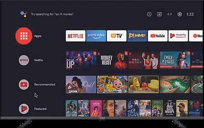 3×HDMI, CI+ Slot, Mini AV Composite, Optical SPDIF, RJ45 LAN, 2×USB, Wi-Fi+BT, Dolby Digital, HDR10, HbbTV 2.0, Google voice assistant