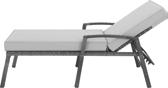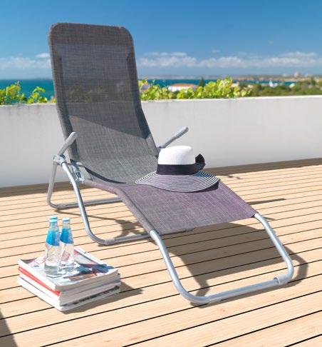 2: Baštenska ležaljka Catania, podesivog naslona, aluminijsko postolje, dim. 70x105x140 cm, površina za sjdenje/ ležanje od tekstilen tkanine, nosivost do 120 kg. Dostupna u dve kombinacije boja: antracit okvir/tamnosiva tkanina i srebrni okvir/crno-siva tkanina (26720121/01-02)