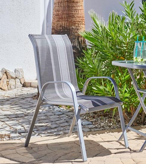 6: Baštenska stolica Alexa, boje: crna ili crno-srebrna, materijal: metal/tekstil, složivo, maks. nosivost cca 120 kg, dim. 54x93x74 cm (18070015/01,11)