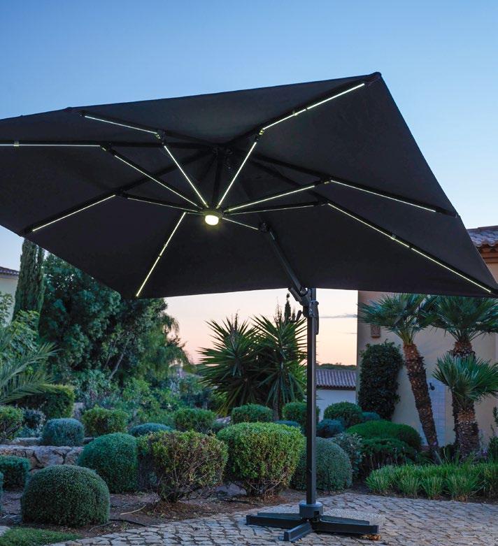 1: Suncobran Sun Deluxe, konstrukcija je izrađena od kvalitetnog aluminijuma u antracit boji kao i platni deo. S podesivim nagibom, UV zaštitom, mogućnošću rotiranja za 360° i ugrađenom LED rasvetom; dim. Ø300x265 cm. (14460008/01)