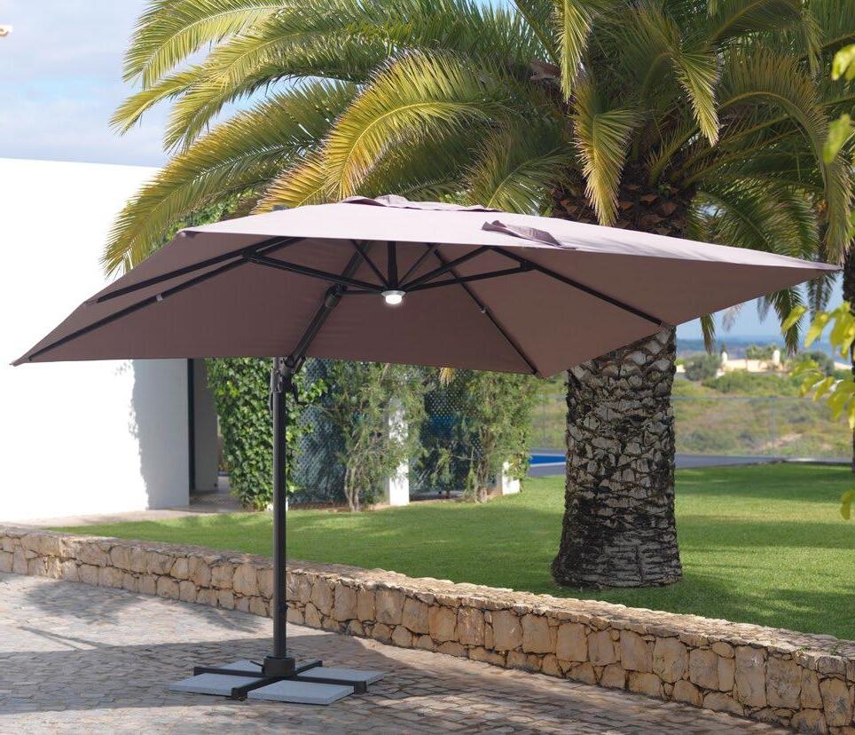 Suncobran Big Roma LED braon boje, senilo od 100% PES boje bibera ili taupe boje, dim. 300x300x265 cm, raspon 300 cm. S podesivim nagibom, UV zaštitom, mogućnošću rotiranja za 360° i integrisanom LED rasvetom (14460011/01,02)