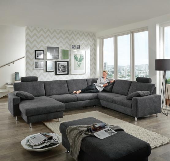 € Kutna garnitura CUBINO S 270x190cm, ležaj 124x200cm, spremnik, 3x podesivi glavonasloni, lijevi i desni kut, cijena vrijedi za materijal Cosmic 121 (siva) i 301 (narančasta).