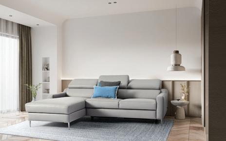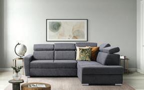 2.490 € Kutna garnitura SERGIO, 274x231cm, ležaj 125x195cm, spremnik, 4x podesivi glavonasloni, vrijedi za materijal Barrel 38 (zelena) i 90 (siva) do isteka zaliha.
