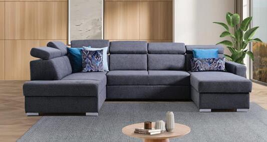2.806 € Kutna garnitura MARVIN, 276x177cm, ležaj 140x200cm, 1x električno izvlačno sjedište, cijena vrijedi za materijal Memphis 74 (plava) ili 18 (siva) do isteka zaliha.