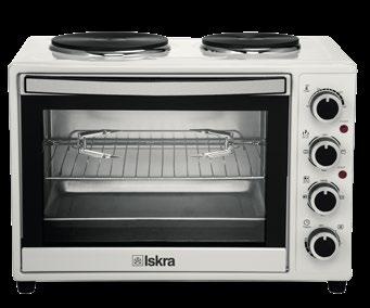 snaga pećnice: 2000 W, električne ploče: velika 1000 W, mala 600 W, kapacitet pećnice: 38 L, raspon temperature: 100-230°C, 3 načina rada pećnice 1 kom