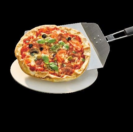 ✔ Pizzu stavite na prethodno zagrijanu kamenu ploču pomoću lopatice.