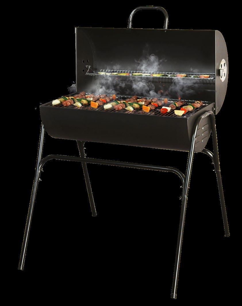 dimenzije: 93 x 40 x 85 cm, rešetka: 53 x 32 cm s 5 razina visine, posuda za pepeo, emajlirana plitica za pripremu vatre, kotači za lakši transport, drvena bočna polica s ručkom i kukom, podna polica za odlaganje, rešetka za grijanje hrane 1 kom