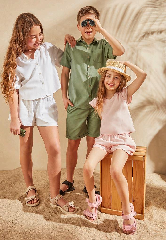 70% pamuk, 20% viskoza, 10% lan, veličine: 104 - 134 cm, kratke hlače – 5 EUR, košulja – 6 EUR