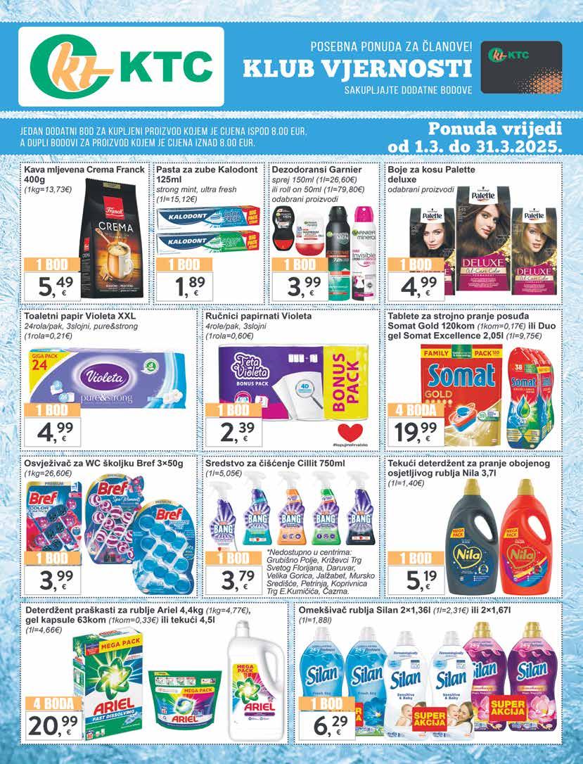Nakladnik: KTC d.d., N, Tesle 18, 48260 Križevci, Tel: 048/628-554 U nekim prodajnim prostorima, zbog ograničenog prostora, nisu dostupni svi proizvodi iz letka . KTC d.d. zadržava pravo promjene cijena uslijed promjena cijena na tržištu Sve fotografije proizvoda su simbolične, te ne moraju odgovarati stvarnom proizvodu | KTC d.d. zadržava pravo tiskarske pogreške ROBNI CENTRI: BJELOVAR-50, Pakračka ulica 1, 043/638-871, ČAKOVEC-64, Športska 4, 040/638-271, DARUVAR-78, Krste Frankopana 35, 043/638-380, ĐURĐEVAC-59, Đure Basaričeka 16, 048/628-080 GRUBIŠNO POLJE-76, Ulica N. Š. Zrinskog BB, 043/639-170, IVANEC-58, Ivanečko naselje 1c, 042/771-870, KARLOVAC-8A, Senjska 118, 047/658-100, KOPRIVNICA-40, I. Česmičkog 15, 048/628-330, KOPRIVNICA-88, Trg Eugena Kumičića 1, 048/617-640, KRAPINA-77, Bobovje 52/c, 049/658-100, KRIŽEVCI-95, N. Tesle 18–048/628-595, TC KRIŽEVCI-07, Samoposluga–Trg Sv. Florijana 1, 048/628-145, KUTINA-54, Sisačka ulica 14, 044/660-871, MURSKO SREDIŠĆE-86, Tekstilna ulica 1, 040/644-230, PAKRAC-69, I. Gundulića 1b, 034/638-970, PETRINJA-79, Ul. Ivana Gundulića 14, 044/500-551, PITOMAČA-42, P. Preradovića 2, 033/638-902, POŽEGA-44, P. Radića 46A, 034/638-152,PRELOG-62, Zrinskih bb, 040/638-160, SISAK-41, N. Tesle 12/b, 044/660-926, SLATINA-43, Industrijska bb, 033/638-021, VARAŽDIN-87, Gospodarska 3, 042/658-850, VIROVITICA-46, Vukovarska 3a, 033/638-970, VRBOVEC-48, Zagrebačka 48, 01/2793-242, ZABOK-60, Prilaz Janka Tomića 1, 049/658-966, DUGO SELO-90, II Savski odvojak 12,01/688-6230