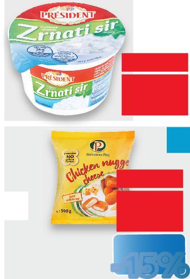SUPER CIJENA SUPERCIJENA UPER-18% 18% UPERCIJENA samo 3.89€ 4.75€ (=1 kg 9.45€) PRESIDENT Zrnati sir classic ili s vlascem 200 g SUPER CIJENA-17% 1.89€ 2.29€