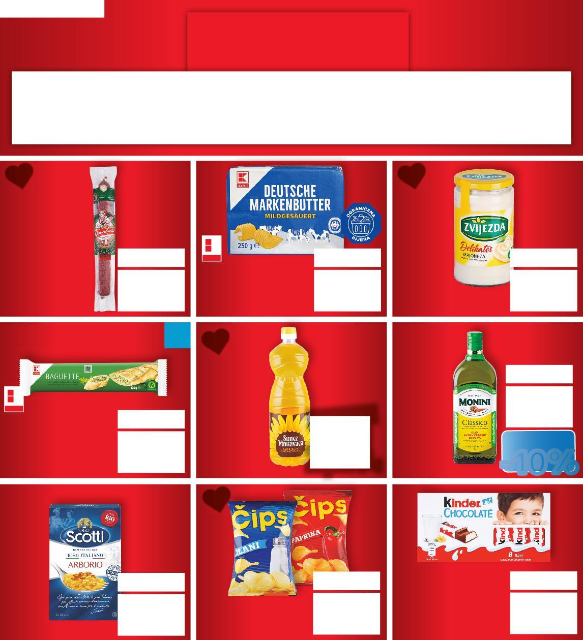 *Sve navedene cijene izražene su u eurima s PDV-om Ne odgovaramo za tiskarske pogreške Fotografije proizvoda ne moraju 100% odgovarati dotičnim proizvodima Proizvode iz aktualne ponude možete kupiti samo u količinama predviđenim za kućanstvo. **Pojedini proizvodi označeni kao kratkotrajna ponuda dostupni su količinski i vremenski strogo ograničeno, te je za istima u pravilu potražnja povećana. Stoga upućujemo naše cijenjene kupce da je sve detalje oko istih moguće dobiti na našem info-pultu izravno, ili pak unaprijed putem Upravljanja odnosa s kupcima, na broj 0800/223 223 ili putem e.maila kontakt@kaufland.hr MPC=maloprodajna cijena u smislu čl. 4. st. 1. t. 11. Zakona o zaštiti potrošača (NN 19/22, 59/23)