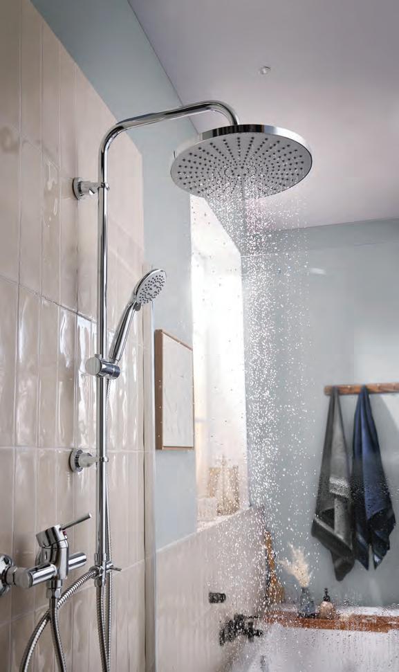 Gornji tuš sa snažnim kišnim mlazom i ručni tuš sa 3 vrste mlaza Sa sistemom protiv kapanja - gornji tuš ne kaplje kada se dovod vode zatvori