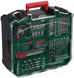 Stepeni obrtnog momenta: 19 + 1 stepen za bušenje Broj obrtaja: 1. brzina 0–350 / 2. brzina 0–1300 min-1 Maks. prečnik bušenja: 25 mm u drvo / 10 mm u metal Raspon stezanja glave: 0,8–10 mm