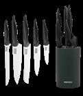 11: Blok s noževima Sequence 6/1, stalak od bambusa, 4 noža različitih namjena i škare. Blok s noževima Mojo 6/1, 5 noževa različitih namjena s oštricama izrađenim od kombinacije ugljičnog i nehrđajućeg čelika koje su kromirane radi