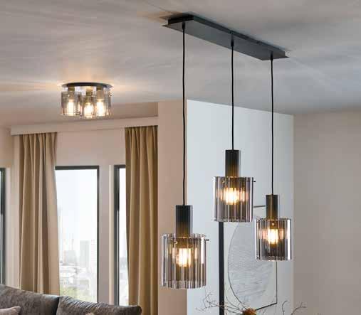 6: Stropna svjetiljka Dundee, metal/ dimljeno staklo sive boje, 3x E27 (nisu uključene) 40W, Ø 37 cm, v. 20 cm, Viseća svjetiljka Dundee, 98x18 cm, v. 120 cm. (81810992/01-02)