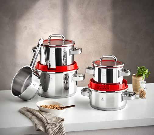 2: Set ekspres lonaca 2/1, Cromargan® nehrđajući čelik 18/10, transtermalno dno, ručka odvojiva jednim klikom, jednostavno čišćenje, mjerna skala, dvije razine kuhanja, 6,5 l + 3 l. Ekspres lonac Vitavit Premium, oplemenjeni čelik 18/10, podesivi stupnjevi kuhanja, u cijenu uključen umetak za kuhanje na pari, Fissler cookstar® dno za sve štednjake, pogodno i za indukciju, Ø 22,5 cm (37312653;37240457/02)