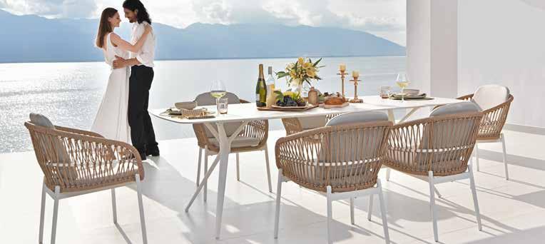 set Angel, aluminijska konstrukcija zaštićena praškastim premazom u bijeloj boji, polietilensko (PE) uže u bež boji. Vrtni stol Angel, s pločom od sinteriranog kamena, cca š/v/d: 180x75x90 cm. Vrtna stolica Angel,cca š/v/d: 64x78x62 cm,nosivosti do 120 kg. (10310013/02-03) 169,0