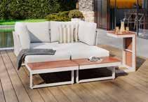 Vrtna garnitura Evita, lijevi ili desni kut, aluminijska konstrukcija zaštićena praškastim premazom u svijetlo sivoj ili antracit boji. Uže i jastuci od olefinske tkanine u bež ili tamno sivoj boji. Sastav: stol, s pločom od ESG kaljenog stakla, cca š/v/d: 135x64x80 cm, nosivosti do 60 kg; tri klupe, cca š/v/d: 190x66x73 cm, nosivosti do 300 kg; cca š/v/d: 168x66x73 cm, nosivosti do 300 kg; cca š/v/d: 120x27x40 cm, nosivosti do 200 kg. (18070014/09,19,29,39)