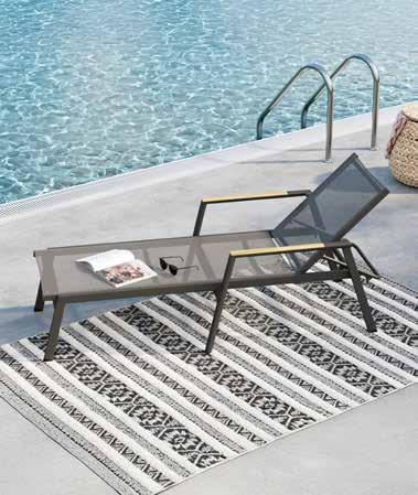 Ležaljka Aspen, aluminijska konstrukcija zaštićena praškastim premazom u crnoj boji/polietilenska (PE) tkanina u tamno sivoj boji ili u boji bjelokosti/polietilenska (PE) tkanina u bež boji. Nasloni za ruke s umetkom od masivnog drva tikovine, naslon za leđa je podesiv, cca š/v/d: 196x52x76 cm, nosivosti do 120 kg. (10310018/04,14)