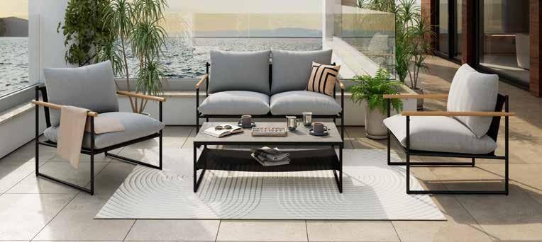 Lounge garnitura Mondsee, čelična konstrukcija zaštićena praškastim premazom u antracit boji. Sastav: stol, s pločom od FSC® nauljenog masivnog drva bagrema, cca š/v/d: 120x68x65 cm, nosivosti do 80 kg; trosjedna klupa , cca š/v/d: 213x68x67 cm, nosivosti do 360 kg; fotelja , cca š/v/d: 93x68x67 cm, nosivosti do 160 kg; 2 taburea , cca š/v/d: 40x34x40 cm, nosivosti do 160 kg. (23040031/09)