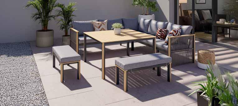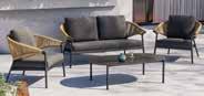 Vrtni set Texas, aluminijska konstrukcija zaštićena praškastim premazom u antracit boji, uže u prošarano sivoj boji, nauljeno, masivno drvo bagrema. Sastav: stol, cca š/v/d: 90x27x60 cm, nosivosti do 30 kg; dvije dvosjedne klupe, cca š/v/d: 128x79,5x71 cm, nosivosti do 240 kg; kutna klupa , nosivosti do 120 kg, cca 79,5x79,5cm; fotelja , 75x79,5x71 cm, nosivosti do 120 kg. (000W0001/19)
