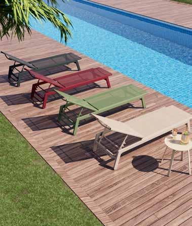 Ležaljka Lina, aluminijska konstrukcija zaštićena praškastim premazom u kombinaciji s tekstilen tkaninom. Dostupno u antracit sivoj, zelenoj, bež i crvenoj boji, cca š/v/d: 55x92x164 cm, nosivosti do 120 kg. Naslon za leđa višestruko podesiv. (20040046/01,04,14,24)