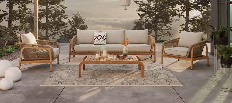 Vrtni set Cameo, nauljeno masivno drvo tikovine, aluminij zaštićen praškastim premazom, uže. Sastav: trosjedna klupa , cca š/v/d: 220x72,5x80 cm,nosivosti do 360 kg; 2 fotelje, cca š/v/d: 91,5x72,5x80 cm, nosivosti do 120 kg; stol, cca š/v/d: 131,5x33x70 cm, nosivosti do 50 kg. (20080001/09)