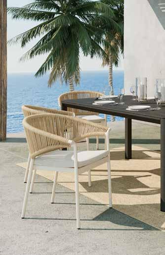 Vrtna stolica Celia, složiva, aluminijska konstrukcija zaštićena praškastim premazom u boji bjelokosti ili crna, uže u natur boji, cca š/v/d: 64x80x59 cm, nosivosti do 120 kg. Vrtni stol Genet i Aspen, aluminijska konstrukcija zaštićena praškastim premazom u crnoj boji ili boji bjelokosti, ploča od porculana u dekoru kamena, cca š/v/d: 180x75x90 cm, nosivosti do 60 kg. (10310016/01,11;0017/07;0018/07)