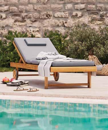 Ležaljka Ontario, FSC® certificirano, nauljeno, masivno drvo bagrema, cca š/v/d: 201x30-60x74 cm, nosivosti do 120 kg. Prednosti: podesiv naslon za leđa i noge, u cijenu uključen jastuk v. 6 cm s odvojivom i perivom navlakom u tamno sivoj boji i jastuk za glavu, kotačići za lakše premještanje. (12540029/04)