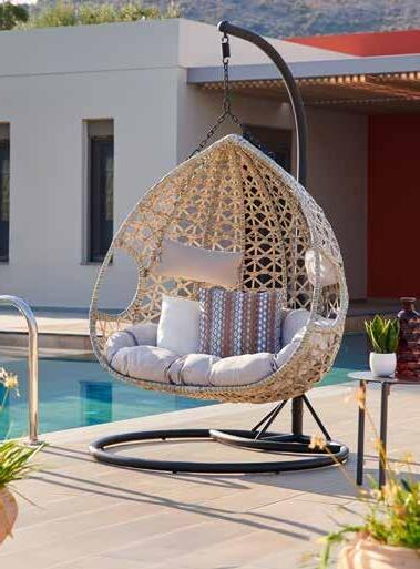 Ležaljka-ljuljačka Kai, čelična konstrukcija u antracit boji, tekstilen mrežasta tkanina u sivoj boji, anatomski jastuk od komforne pjene s odvojivom navlakom, cca š/v/d: 143x81x57 cm, nosivosti do 120 kg. (000R0002/04)