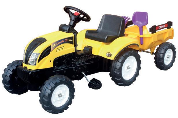 • set sadrži: 1 traktor na pedale, 1 prikolica, 1 lopata, 1 grablje, veličine 123 x 42 x 51 cm