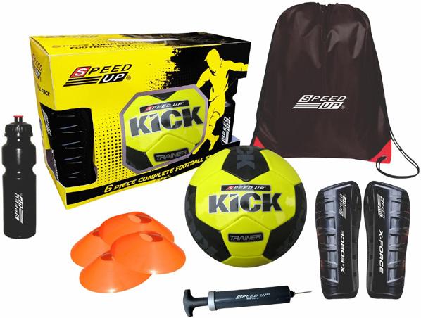 Set sadrži: loptu vel 5, pumpu za loptu, čunjeve x4, štitnike, bocu za vodu, torbicu za nošenje.