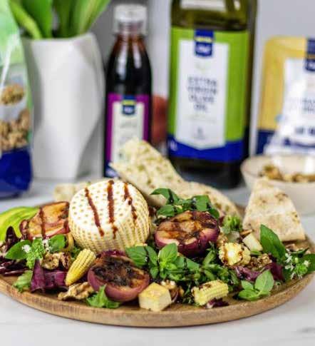 5. Na dasku za serviranje prvo stavi miješanu salatu, dodaj trokutiće lepinje i prelij maslinovim uljem.