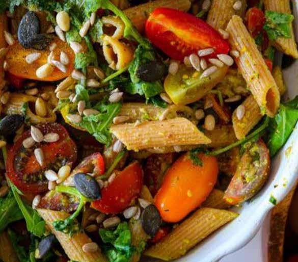 2. Skuhajte integralnu tjesteninu u slanoj vodi, a onda kuhanoj tjestenini dodajte narezane cherry rajčice, rukolu, uljarice, pistacije, sol, papar i na kraju, pripremljeni dresing.