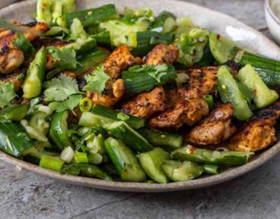 Zdrobljeni krastavac s curry piletinom