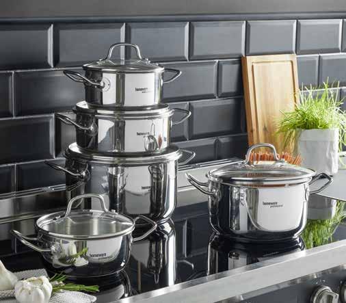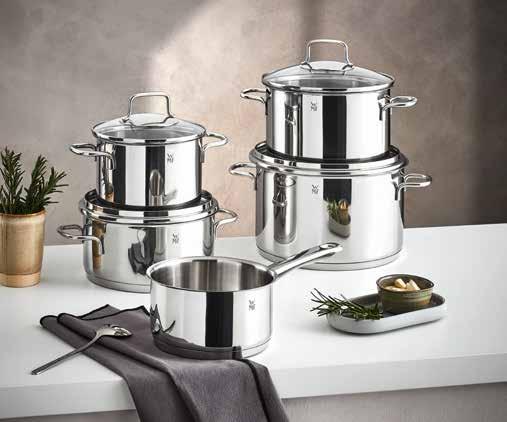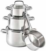 6: Set lonaca za kuhanje Belmonte 5/1, nehrđajući čelik 18/10, sastoji se od dva lonca Ø 16 cm, dva lonca Ø 20 cm i jednog lonca Ø 24 cm, te četiri staklena poklopca, s ručkama koje se vrlo sporo zagrijavaju, pogodno za sve vrste štednjaka i perilicu posuđa. Set pjenjača Profi Plus 3/1 , Cromargan® nehrđajući čelik, s kukicom za vješanje, 3 veličine. (37312613;0736)