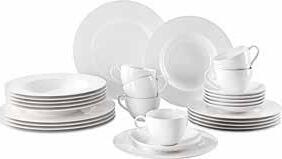 11: Kombinirani servis Amina 20/1 , za 4 osobe, glazirani porculan, s dekorom, set se sastoji od 4 duboka tanjura Ø 21 cm, 4 plitka tanjura Ø 27,5, 4 velike šalice 350 ml i 4 zdjelice 890 ml, pogodno za perilicu posuđa i mikrovalnu pećnicu. (31230354/12)
