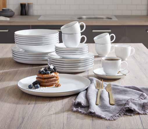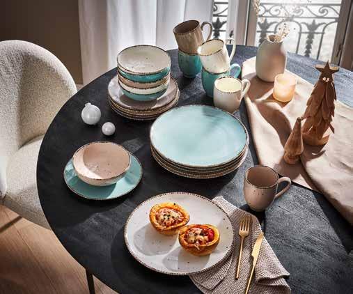 7: Kombinirani servis Urban Life 24/1, porculan, boja: bijela/natur/tirkizna, izgled „istrošenosti“, set se sastoji od: 6 velikih šalica, 6 zdjelica, 6 plitkih i 6 desertnih tanjura, pogodno za perilicu posuđa i mikrovalnu pećnicu. Posuda Top, stako, s poklopcem, Ø 14 cm, v. 19 cm, 1,2 l; Ø 20 cm, v. 18 cm, 2,8 l 34,99 24,99 € (56530035;8096;38138096/01)