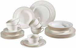 7: Servis za jelo Mesh 18/1, za 6 osoba , porculan, boja: bijela, set sadrži: 6 dubokih Ø 21 cm, 6 plitkih Ø 27 cm i 6 desertnih tanjura Ø 21 cm, pogodno za perilicu posuđa i mikrovalnu pećnicu. Podmetač Tiffany, umjetna tekstilna vlakna, obostrana upotreba, u ponudi više boja, 43x30 cm. (35720549;54180109/01-06,08,10)